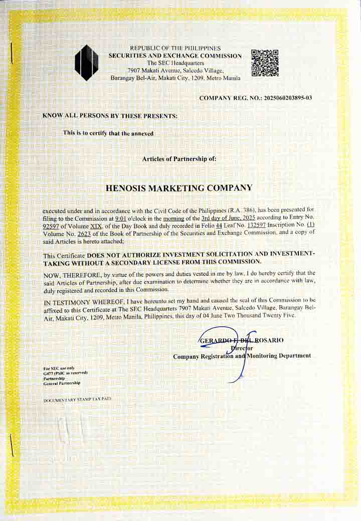 Henosis Marketing Company also known as Henosis or (HMC) is a Multilevel Marketing,Direct Selling/Retailing, Whole selling Company, Founded on the principle of changing lives through an innovative system, excellent products and livelihood program.